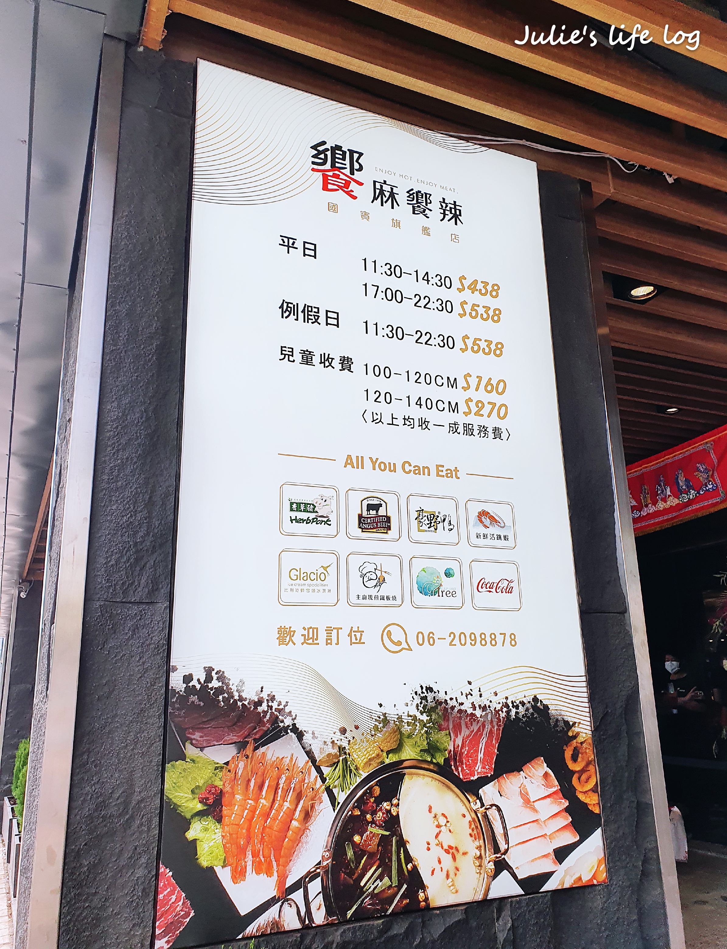饗麻饗辣台南國賓旗艦店就在國賓旁邊,店址原本是電玩店。附近路邊停車格不少,旁邊一心保齡球館後面也有台灣通聯停車場,停車滿方便的。