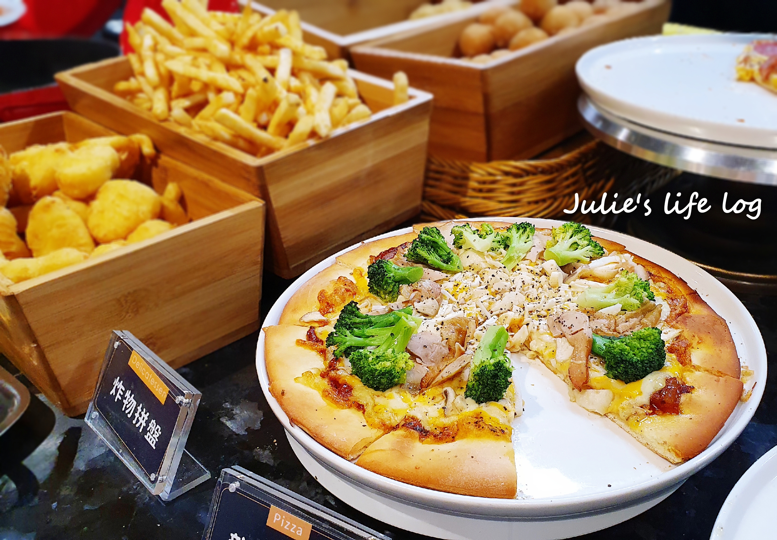 披薩有三種,鹹甜口味都有,脆餅皮餡料多,滿好吃的。