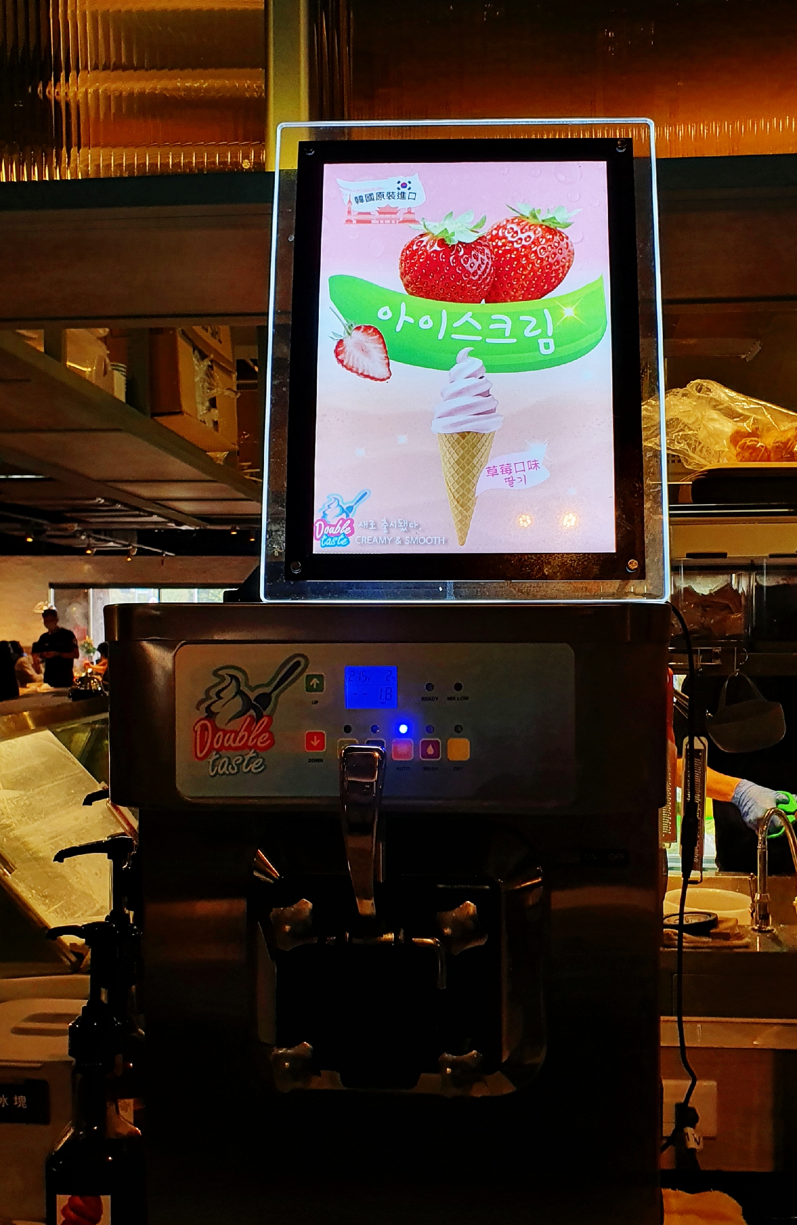 解油膩的茶飲,冰沙機是當季草莓口味。