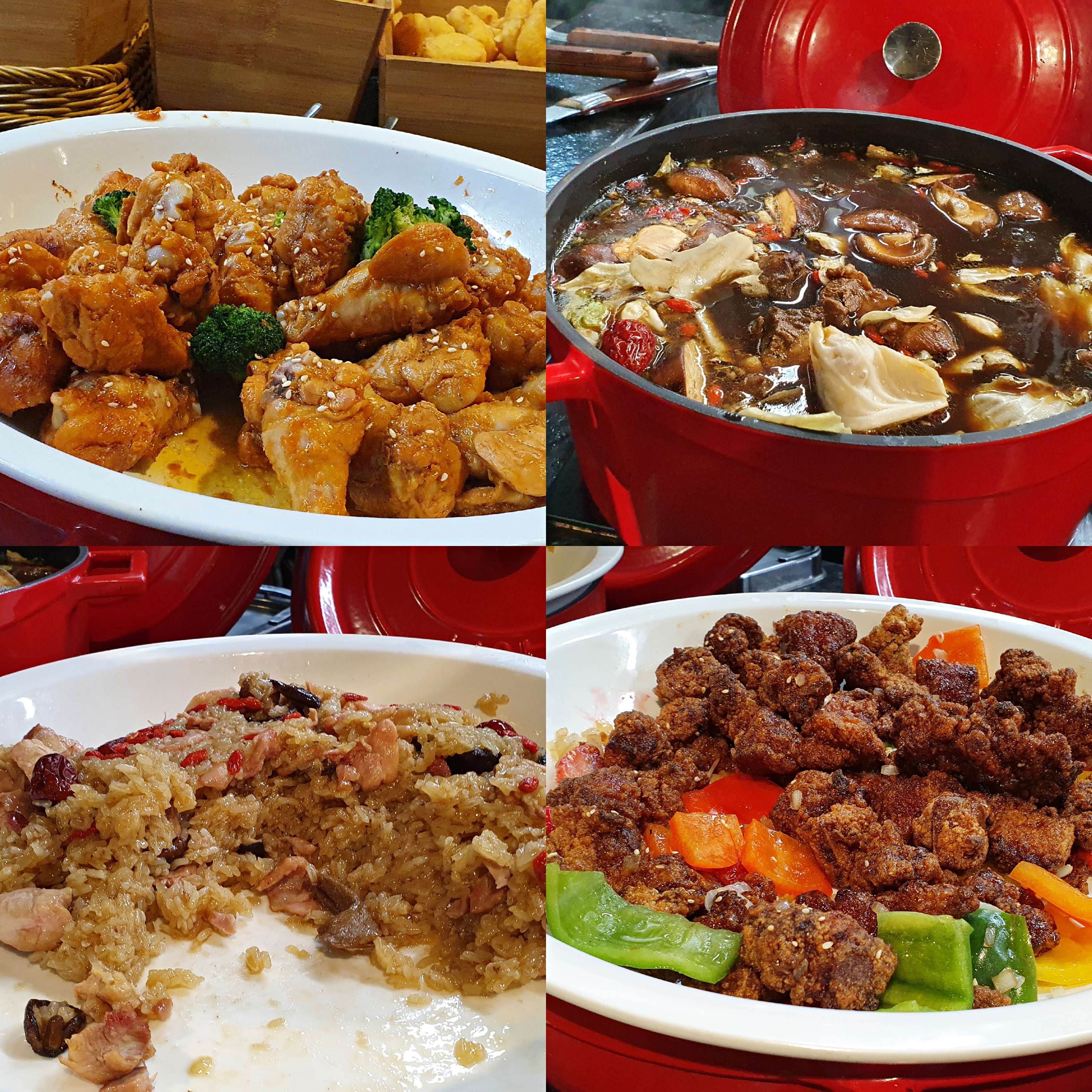 今天的熱食有檸檬雞腿、藥膳排骨、麻油雞油飯、排骨酥。麻油雞油飯超香,雖然知道自己食量不大,不能吃太多這種太佔胃容量的料理,但還是忍不住挖了一點點。