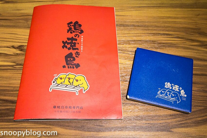【鶏の焼き鳥串燒專門店】菜單和杯墊上也有三隻小雞圖案,