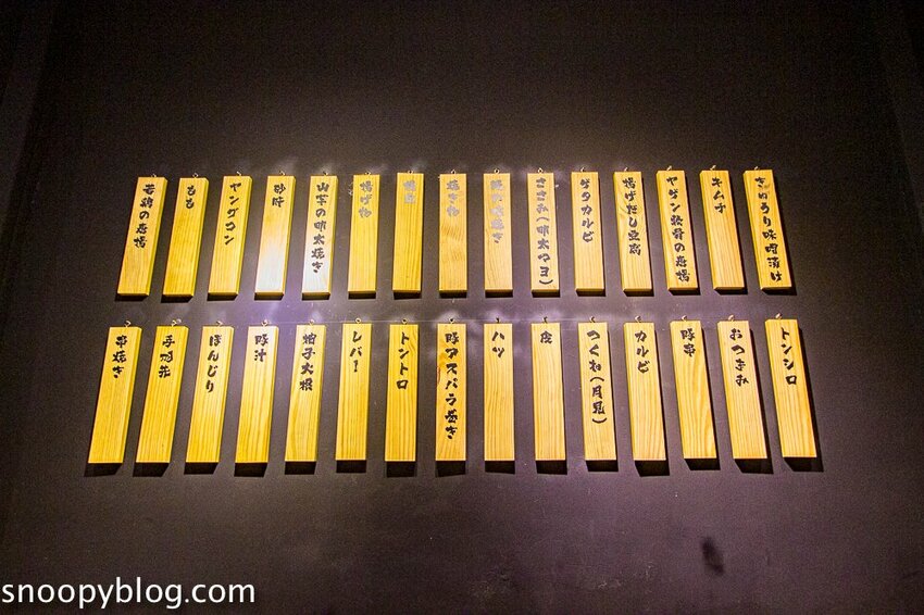 【鶏の焼き鳥串燒專門店】牆上掛了日文版的木製菜單,