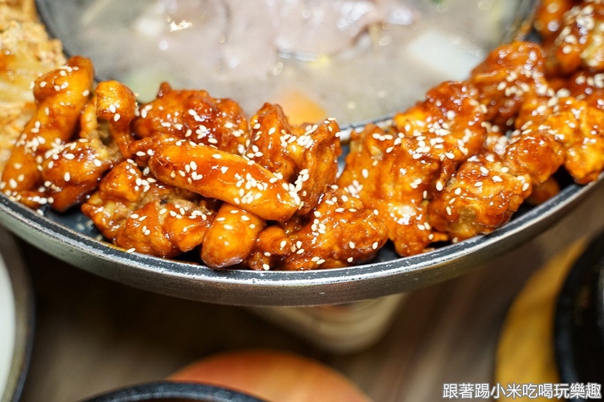 一份1080元燒鍋大盤可以吃到韓式年糕無骨炸雞(甜辣紅醬/自製糖醋雞/辣味3選1)、燒鍋(石頭牛肉鍋/大醬海鮮鍋2選1)、起司燒馬鈴薯、黃金泡菜蛋四種韓式料理,很適合點來3~4人一起分享!