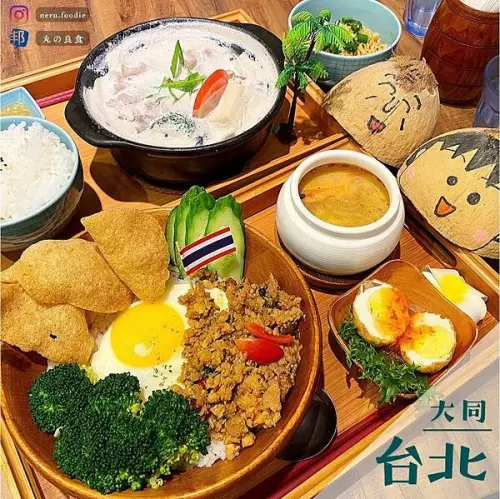 南洋風味的咖哩飯的主菜有小肉餅.雞腿.蔬菜豆腐三種可以選擇😙