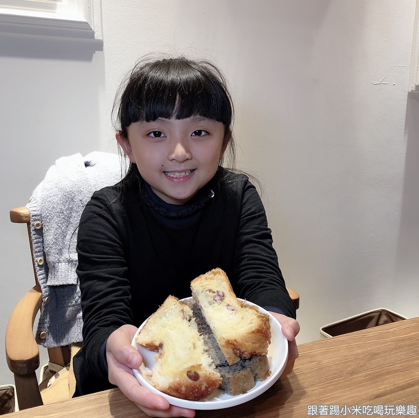 像阿呱和芊芊超喜歡這個紅豆吐司的,甜甜的還有軟酥的丹麥外皮,這個小朋友超愛的,她們可是續了三份呢