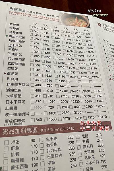 <在菜單上有特別附註,粥品裡會有添加堅果和花生