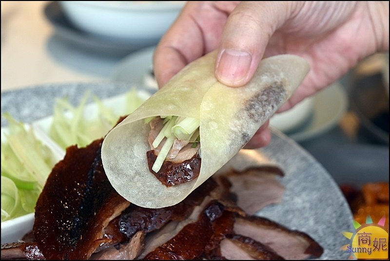 享鴨的烤鴨麵皮也跟一般烤鴨餐廳不太一樣,麵皮比較薄、整個尺寸也比較小,包捲鴨片剛剛好一口大小方便食用。