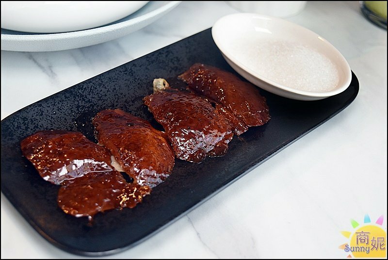 帶皮鴨肉口感軟嫩多汁帶有Q度,油脂香氣十足味道好甜,沾特調的甜麵醬就很好吃。