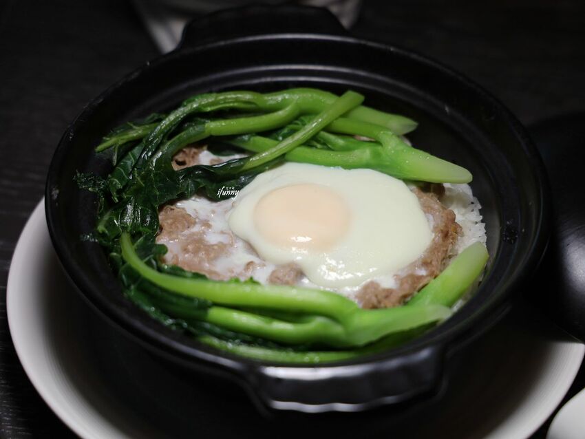 小火慢煲出飯香後,厚厚的牛肉泥上面添加一顆半熟蛋。建議一上桌就開始攪拌,如此半熟蛋液和著酥脆的米飯及鍋巴,就能口口香味四溢。可惜這天我們因為拍照太久,因此蛋黃過熟,有點可惜。