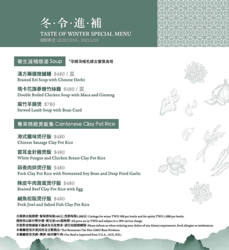 因為疫情不能出國,若真的很懷念粵式料理或港點,相信來一趟青雅中餐廳,就能一飽思念之苦,也能滿足口腹之慾。期間限定的冬季進補特輯,更是增加抵抗力禦寒的最佳方式呢!