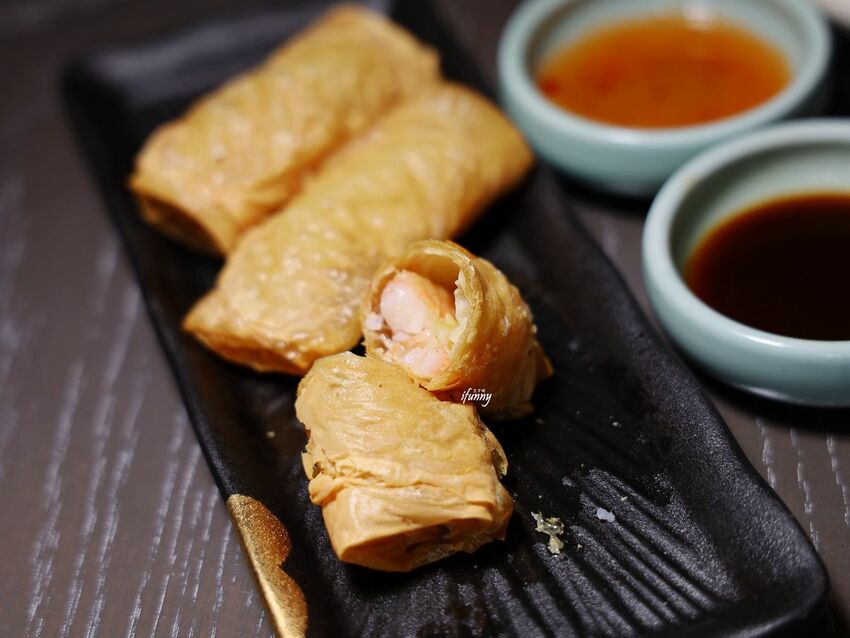 咬下後卡滋的腐皮捲,加上緊實的蝦肉,不需沾醬就很好吃!