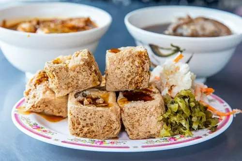 除了招牌臭豆腐外,五香鳥蛋也很受觀光客歡迎,另外還賣當藥膳排骨、豬腳和麻辣鴨血等,這點倒是一反許多鄉下地方通常單賣臭豆腐一味的狀況。再猜想,會不會是當年兩家店合而為一之故?
