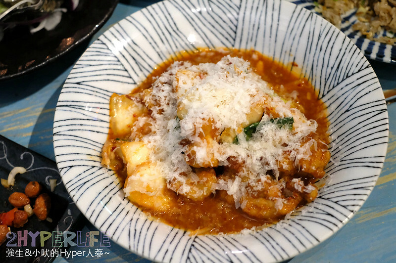 炸雞腿做成一口入的size真方便, 連粉都是師傅自己特調的,不是用外面現成的粉,旁邊沾的醬料是泰式還有意大利醬料下去混合完美比例。整體吃起來意外的清爽