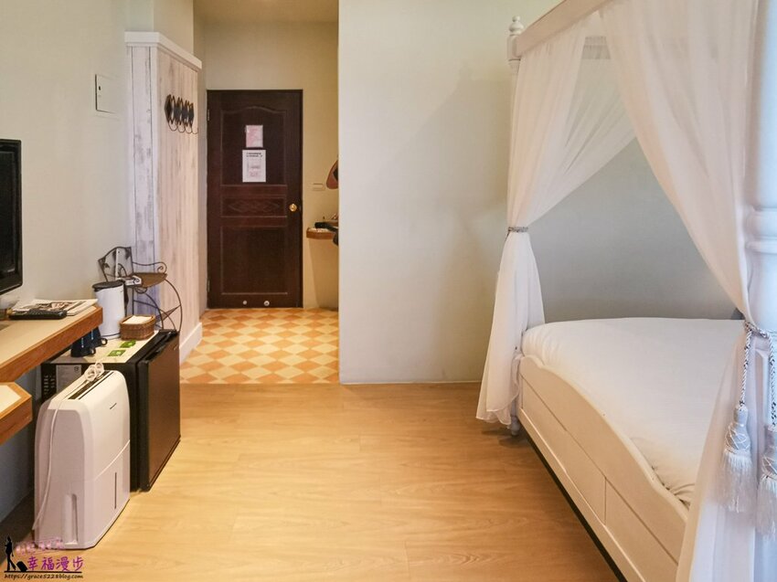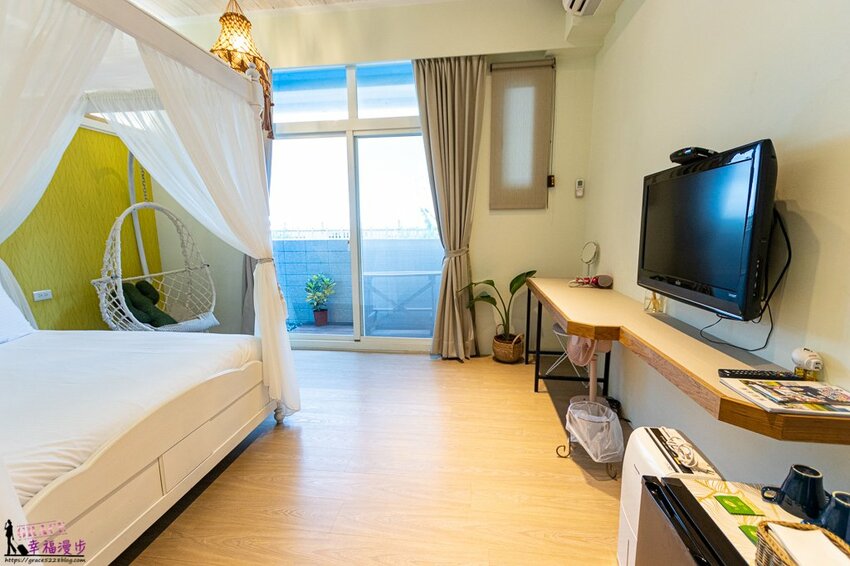 接著來介紹一下我們入住的房型,我們入住的是二樓蜜月客房,有著落地玻璃門更加明亮清爽,我喜歡入住的房間是有明亮感的。