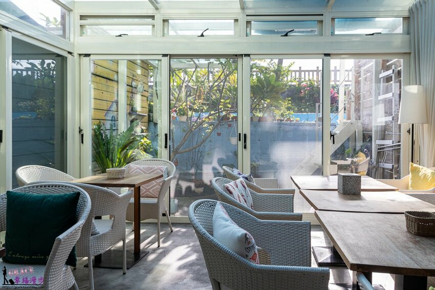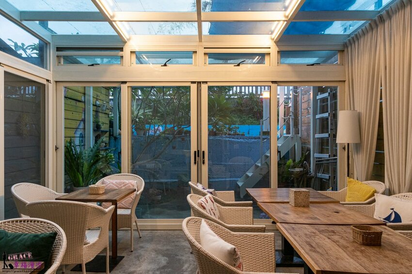 這裡是早餐用餐的地方,如果一群朋友或家人來也可以在這裡聊天,但記得在這個空間使用完畢需要保持清潔把東西歸位,我們要做個合格的旅人喔!千萬不要造成民宿主人的困擾,餐廳是玻璃屋整個很明亮,後面有個小階梯可以走到海邊散步。