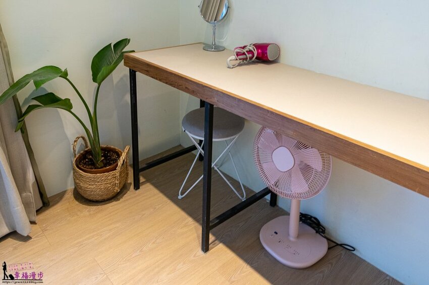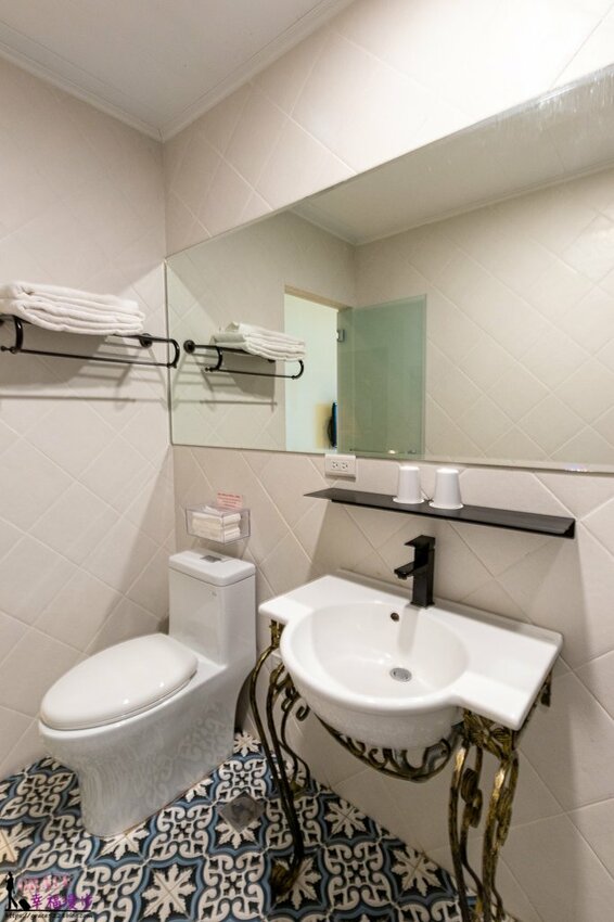 進到房間首先會看到的是衛浴空間,一大面的鏡子是女孩們的最愛,盥洗台小巧典雅,民宿只有提供大浴巾如果習慣小毛巾的請自己帶喔!