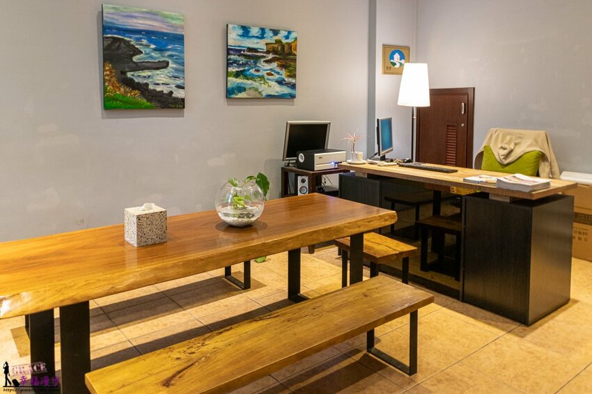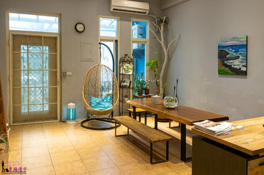 工業風的桌椅搭牆壁上的油畫增添幾分雅緻,而且這家是有合格民宿登記,住宿還是要選擇有合格登記的比較有保障喔!