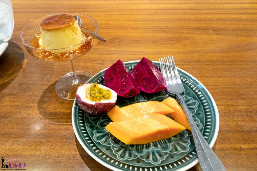 因為我是3點多就辦理入住,小管家說有準備下午茶小點心給我們品嚐這也太貼心了,問一下小管家是不是入住都會有下午茶呢?小管家說只要早點抵達民宿基本上都會有準備喔!下午茶點心有著當季的水果和布丁,都是出自民宿主人的一番心意,布丁滑嫩又不會太甜膩還蠻好吃的。