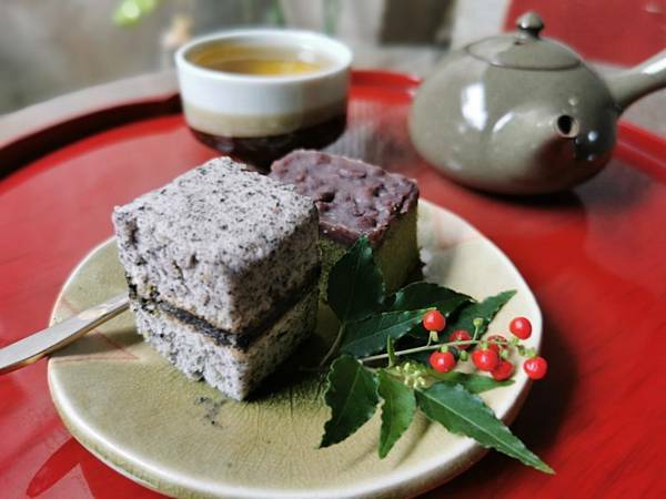 選用的是日月潭老茶廠的18號經典紅茶加上抹茶紅豆、芝麻蛋糕來做搭配