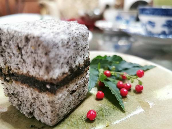 芝麻蛋糕中間的夾層以芝麻醬,讓整體的口味更加的提升