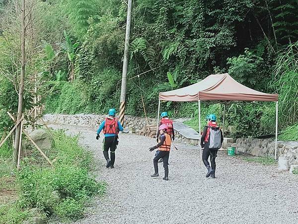 溪部好呆庄最棒的部分就是餐食及溯溪攀樹體驗的部分,有最專業的『華木戶外休閒團隊』來專業引導,不用很多人,就算只有一人報名,團隊也會用心的帶領。當日只能說相當可愛,原本是隆爸跟白白要一起溯溪探險,沒想到我們家隆爸臨時反悔,畢竟隆爸真的是旱鴨子,別看他185身高,可是他相當怕水,而我們家勇敢的顏白白雖然8歲,但他勇氣十足,覺得有專業教練的引導之下他可以完成任務,所以當日真的相當高規格,因為正常來說一個教練可以帶到五個學員,而當日3個教練帶他一個人,所以我也相當放心。