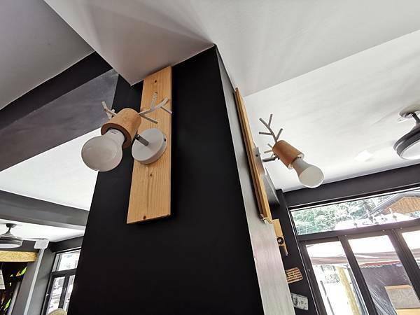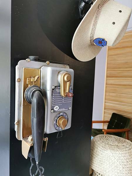 床頭的小檯燈也相當復古造型,就像古時候礦坑裡頭的燃媒燈一樣吸引人