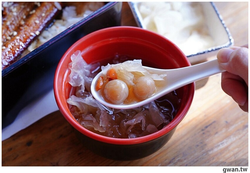 一口鰻魚搭配一口白飯,這裡的米飯使用越光米,口感上很Q彈,蒲燒鰻魚也是比較有口感的,鰻魚的油脂搭配鹹甜醬汁,再跟米飯一同入口非常好吃。雖然沒有鰻魚三吃的噱頭,但這樸實的美味也很讓人喜歡