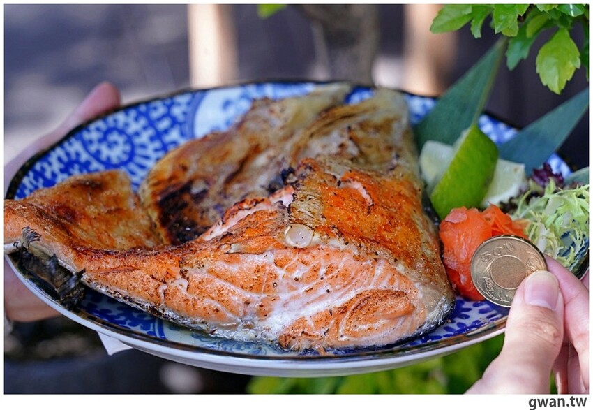 鮭魚頭帶有炙燒過的香氣,肉質很油潤,不喜歡太肥膩的話也有很多瘦肉,除了肥瘦兼具還具有豐富膠質,一整顆吃起來太過癮了