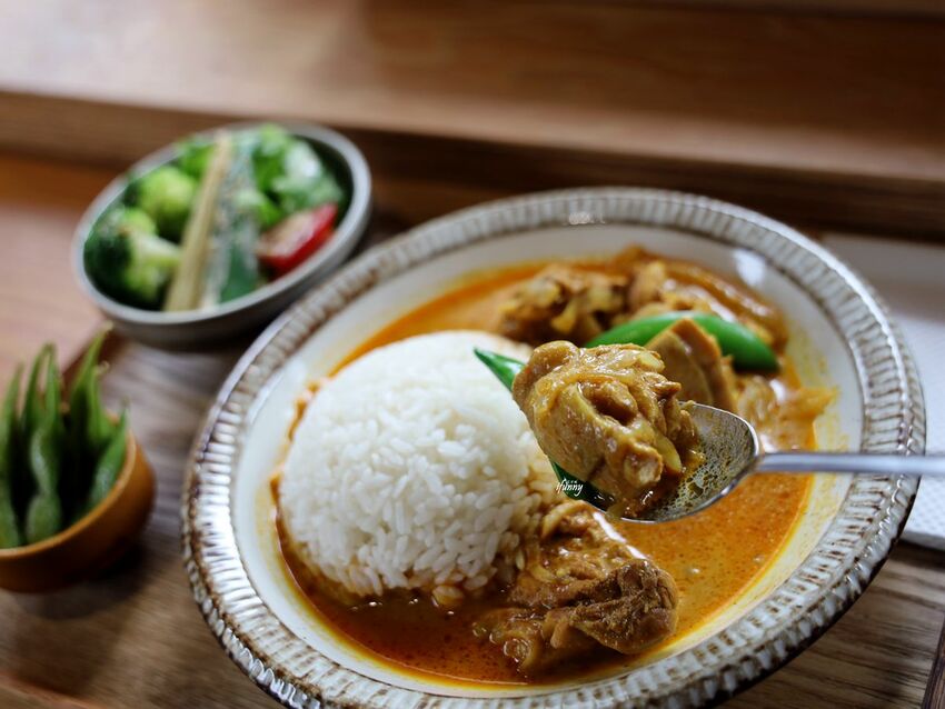 這道香料優格咖哩雞,以日式風味融合了優格,令原本有點刺激的咖哩多了柔順的口感,微辣的滋味更勾起食慾,纏繞在舌間的芳香令人回味不已。