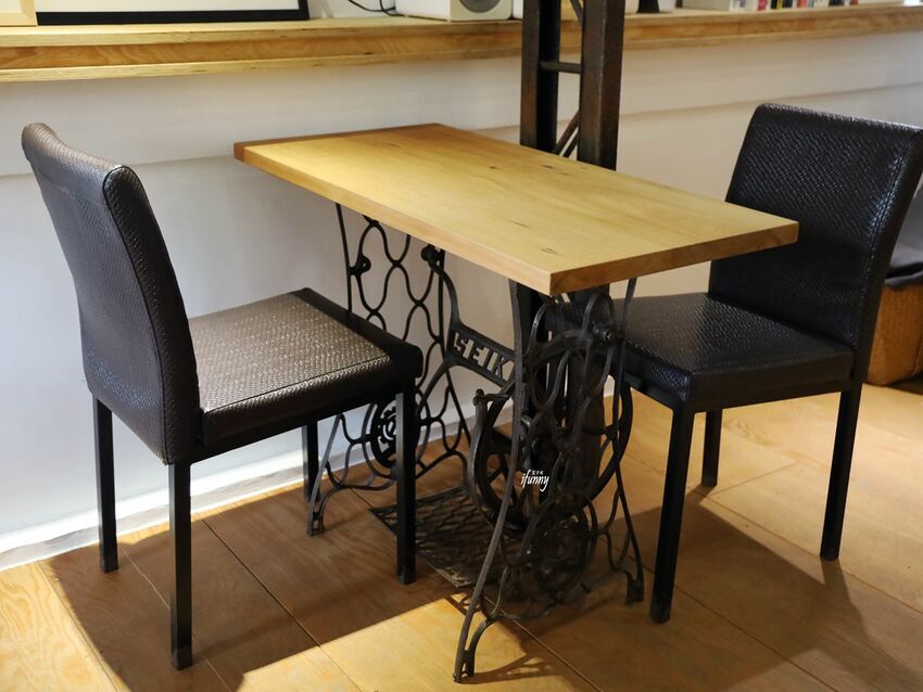 以裁縫車改造的座位區,別有風味。