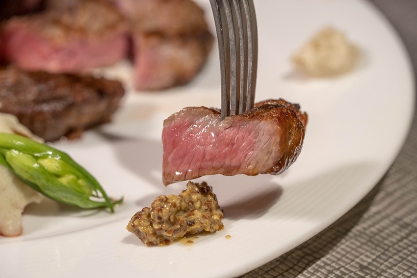 這道「美國冷藏肋眼牛排」微焦表層吃起來有焦香味,油花分佈均勻,肉汁鮮甜、牛油香氣更是誘人!牛肉肉質軟嫩有嚼勁,個人大推肋眼牛排沾點芥末子醬,辛香嗆辣和多汁的牛排一起吃超對味!