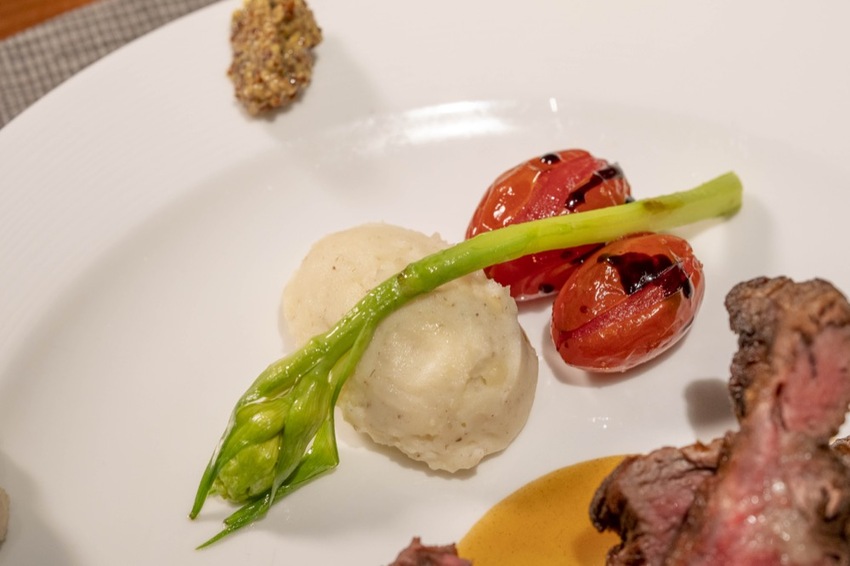 來到這裡一定要點一下他們的美國頂級冷藏牛排,這道「美國肋眼上蓋老饕牛排」油脂偏多吃起來口感更嫩,如果是怕油膩的人建議最好點七分熟,把油脂燒掉後也能慢慢品嚐,即使冷掉了也毫不受影響。另外旁邊的馬鈴薯泥也很細緻,搭配煎過的微焦番茄有夠甜!