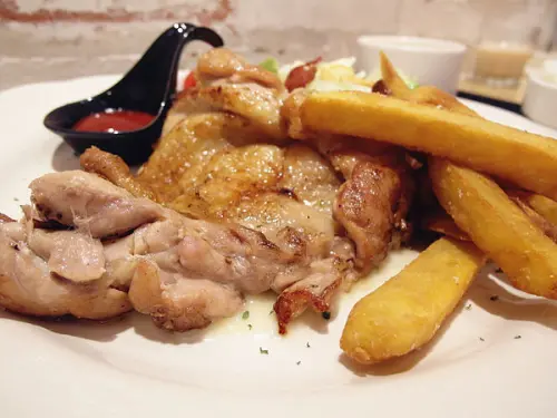 雞腿焦香軟嫩 配上酸辣的泰式風味沾醬