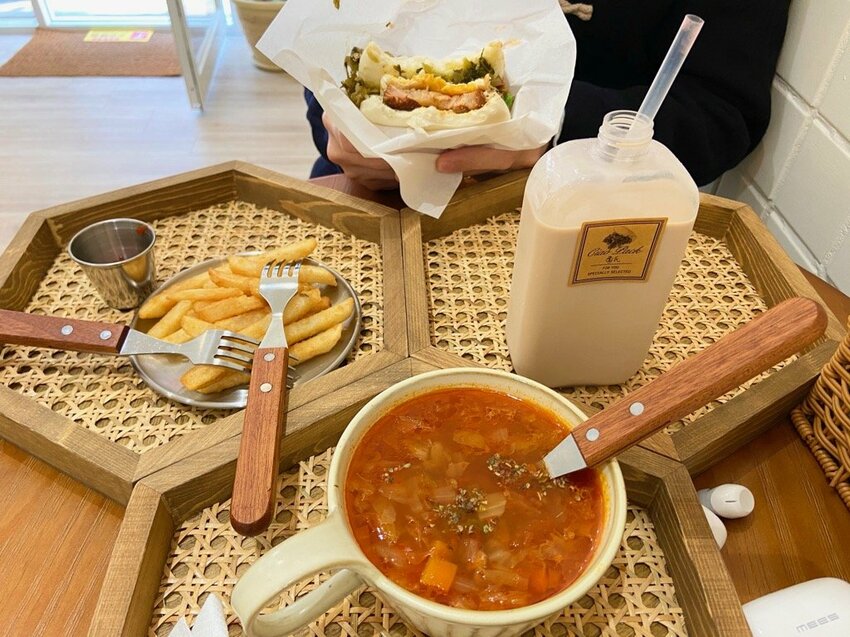 Tai點經典控肉刈包+蛋,還有羅宋湯,
