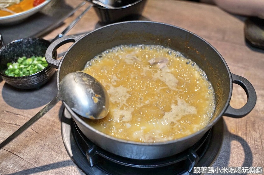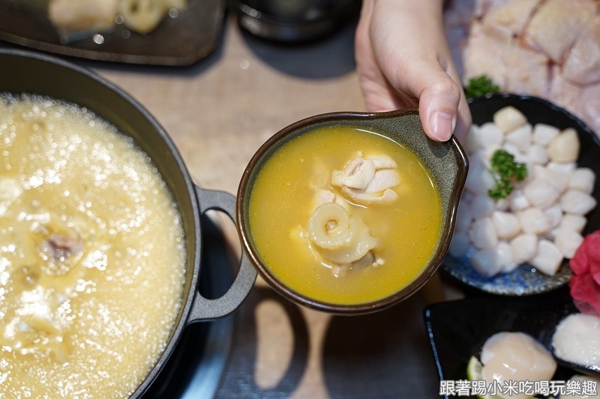 精心熬出來的是黃金雞湯,光是原本湯底就可以感受到膠質的魅力,小米建議先喝點原味雞湯,口腔內可以感受濃郁的雞湯,帶點膠質的甜味,溫和順口,先喝個一碗暖暖胃