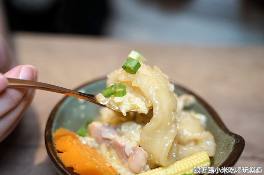 這也是小米的建議,可以跟店員說,加點雞蛋來吃點原味,蔥的部分就視狀況來添加,如此才可以吃到粥的原味。
