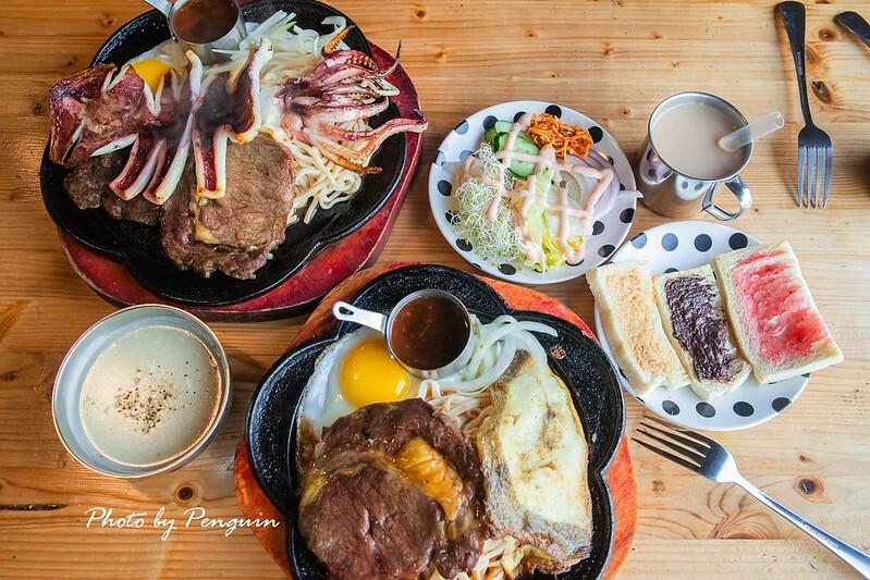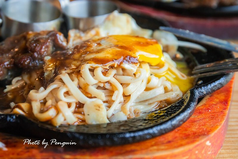 鐵板麵的部分也可以更換成米飯,排餐熱騰騰的端上桌,