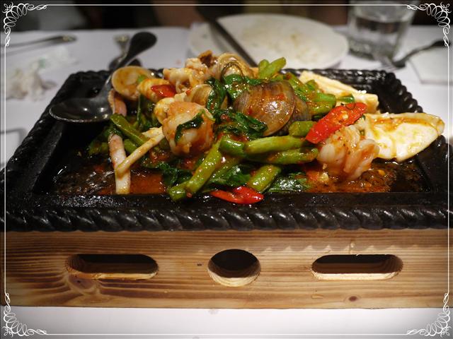 海鮮部分有新鮮的花枝,蛤蜊和蝦仁 搭配四季豆,九層塔和檸檬葉