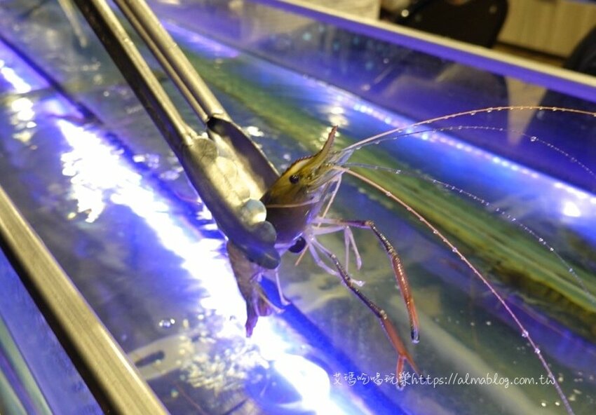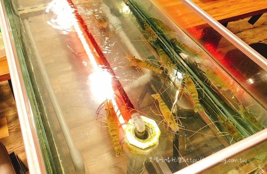 餐廳有左右兩邊,由服務人員帶位,現場一共有三條水道,可以容納百人挺大間!每個座位旁邊就是水道蝦池,坐在原味就能順手撈蝦!是不是相當方便呢。