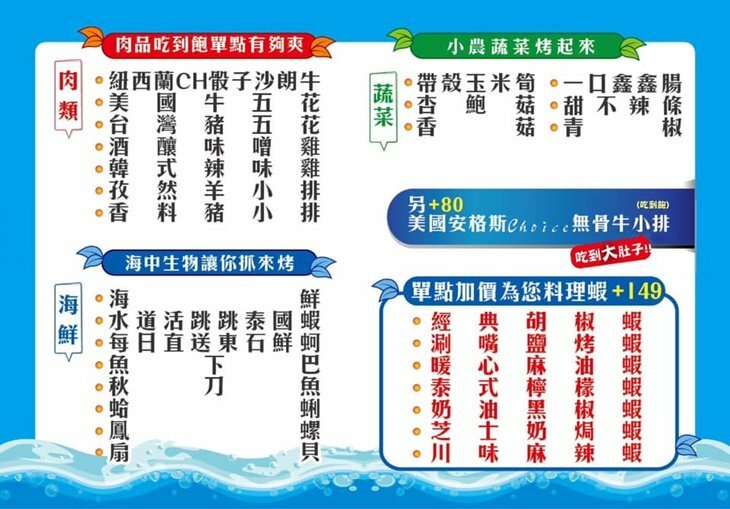 *想吃活碰亂跳泰國蝦和烤牡蠣來這就對了!烤爐有點小加上火力集中在中間,想吃泰國蝦吃到爽,中間烤蝦位置可不能空著,對於喜歡吃泰國蝦的人來說,來這大吃絕對比自己買蝦還划算,一般泰國蝦專賣店一道料理約500元, 這分別是749元和849元吃到飽,就看你喜歡哪一種。(內文僅供參考)