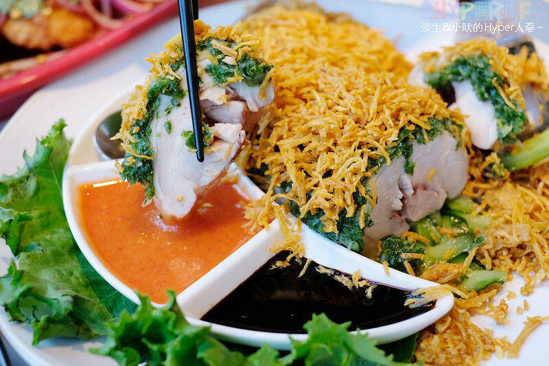 這道一上桌外型根本猜不出來是海南雞啊!上頭舖的是滿滿炸得金黃酥脆的炸薑絲,不說還真猜不到((拍大腿