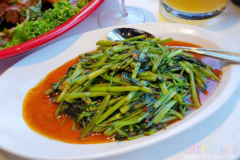 以主廚特調的馬來西亞森巴醬爆炒空心菜,這道微辣喔🌶