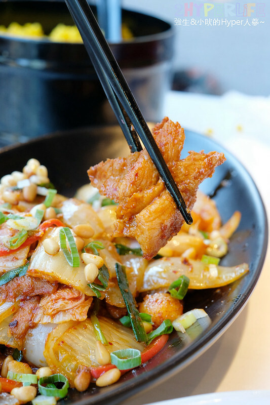 這道菜色使用松阪豬肉搭配微辣泡菜,加入松子和洋蔥一同快炒後再灑上蔥花,算是色香味俱全的一道!
