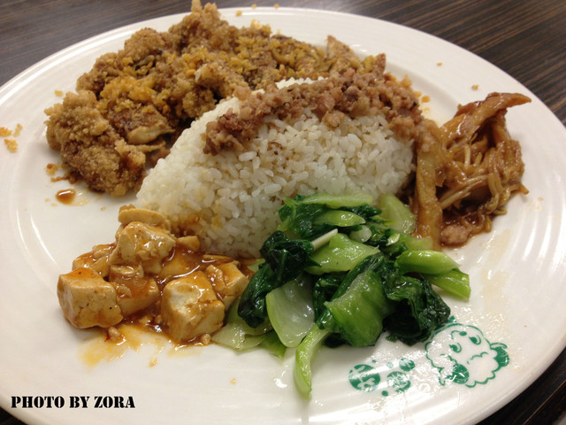 配菜是麻婆豆腐,青菜,薑絲甜不辣