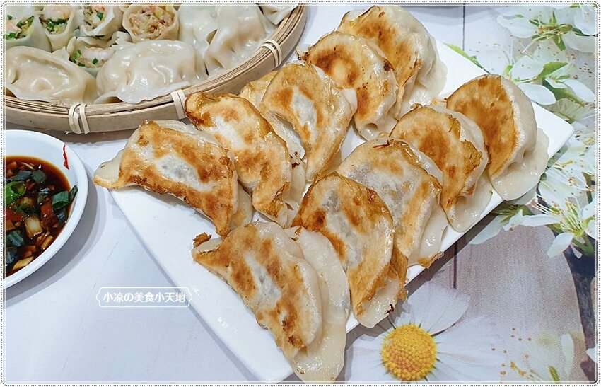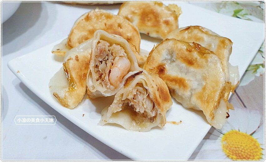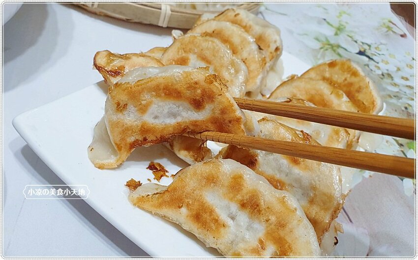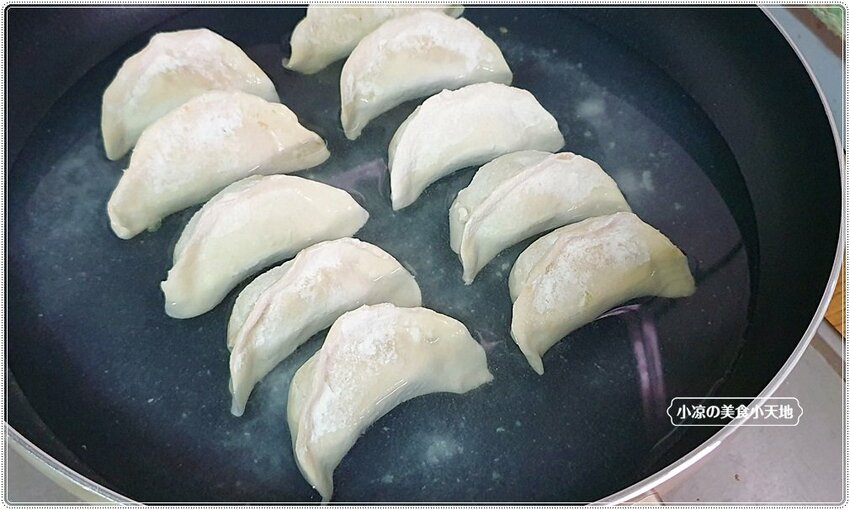 過了五分鐘大約在這個狀態下,其實已經可以開蓋子讓它慢慢收乾,覺得水分差不多就可以倒入一點點油,讓水餃的底部煎至金黃酥脆,當然這時間一定要稍微的搖晃下鍋子,讓油能穿透每一處,煎至恰恰的煎餃也就是在考驗自己的技術囉XD 覺得應該差不多就可以稍微地翻面看看煎餃的色澤,金黃酥脆就可以上桌囉!! 小涼講解不夠清楚的話,就點入店家粉專看作法吧!! 我也都是上粉專看得XD