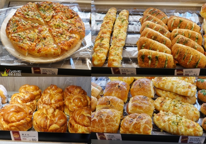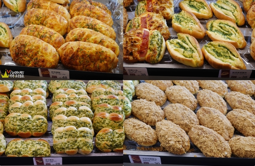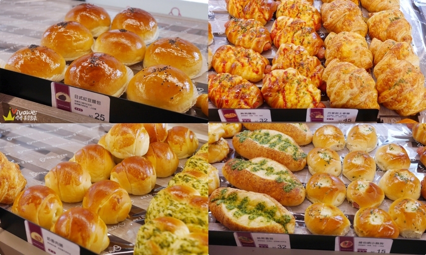 ▲日式紅豆麵包、熱狗麵包、丹麥起司香腸、奶香肉脯、哈斯香蒜、維也納小熱狗。