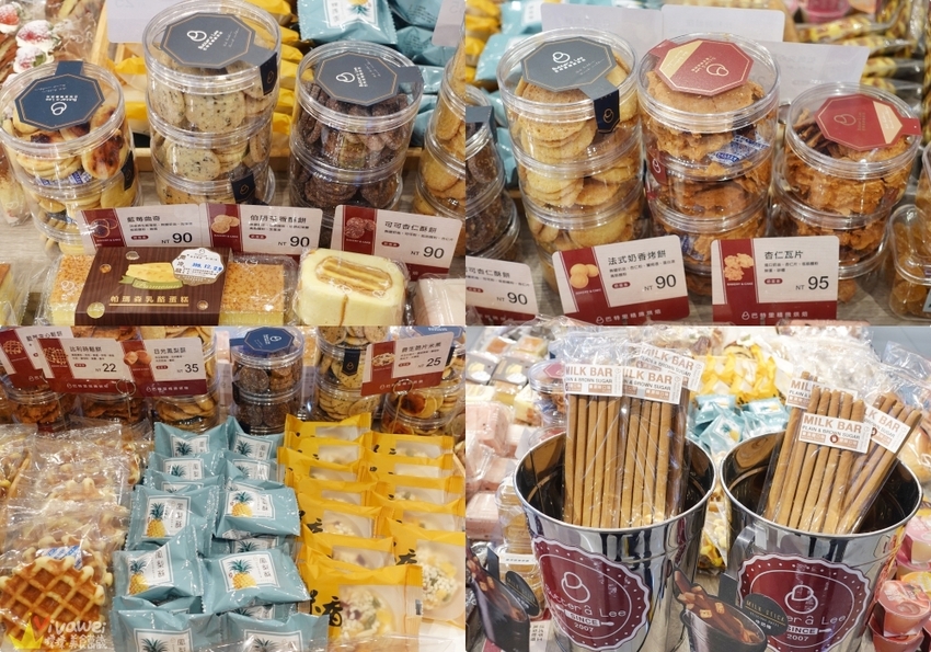 ▲各式手工餅乾、比利時鬆餅、鳳梨酥、養生脆片米果、牛奶棒。