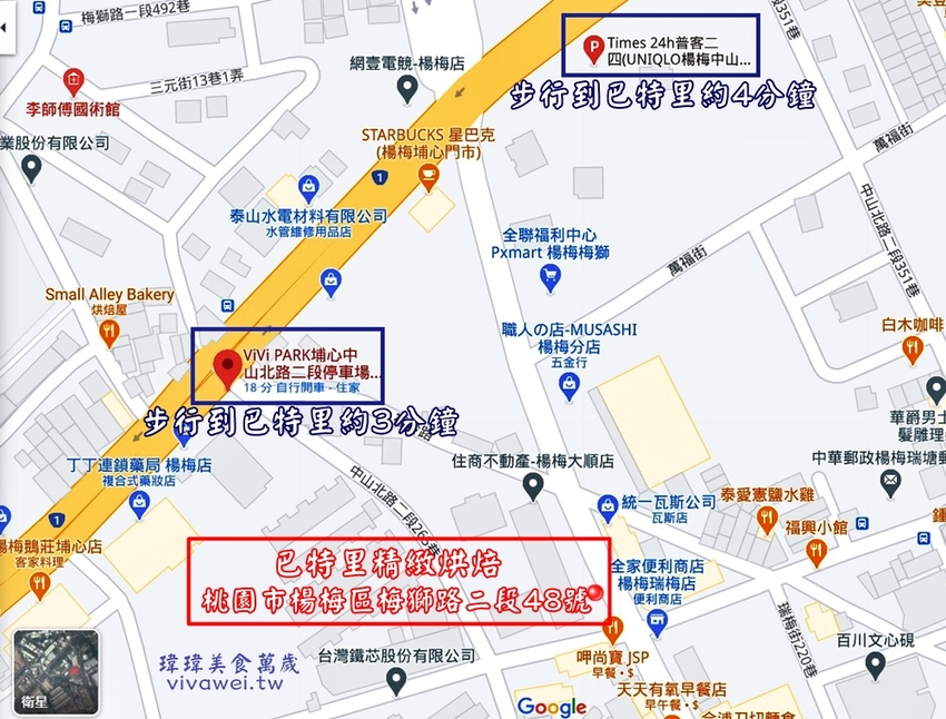 ▲「巴特里精緻烘焙」路邊的白線可以停放車輛,但若找不到位置也可以停放在周邊的收費停車場,距離店家步行5分鐘內就有2個收費停車場可以停車唷!或是可以選擇騎乘機車前來會更便利~