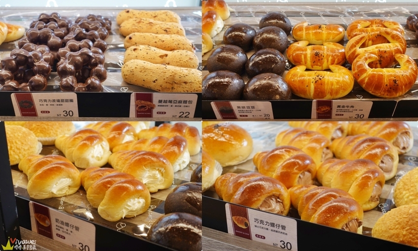 ▲巧克力波堤甜甜圈、蔓越莓亞麻麵包、黑眼豆豆、黃金牛角、奶油螺仔管、巧克力螺仔管。