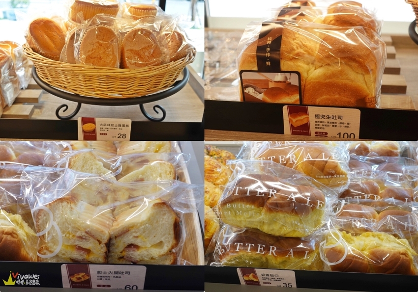 ▲古早味起司雞蛋糕、極究生吐司、起司火腿吐司、奶香包。